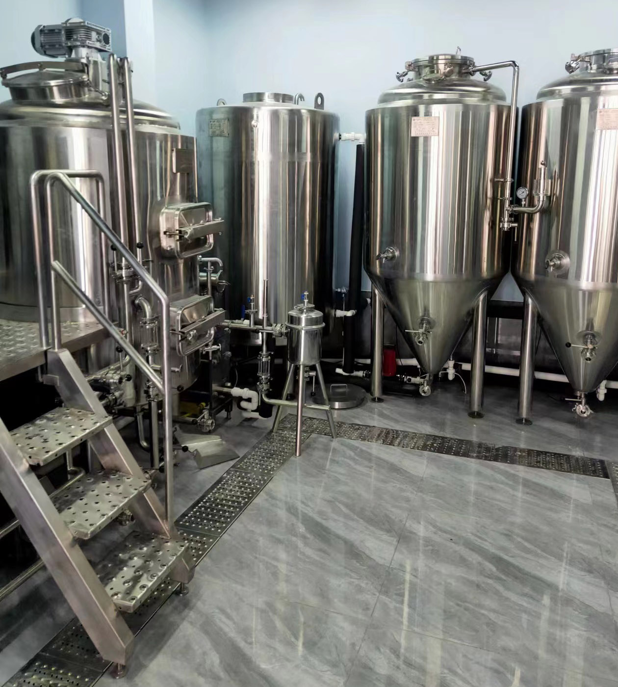 其他的工廠類的設(shè)備搭配方式就比較多,兩器、三器、四器、熱水罐,這些可以結(jié)合著設(shè)備配備的發(fā)酵罐情況以及生產(chǎn)計劃安排等來合理配置。
