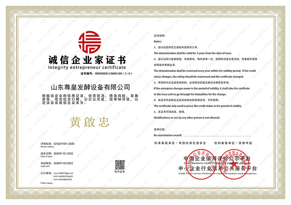 誠(chéng)信企業(yè)人榮譽(yù)證書(shū)