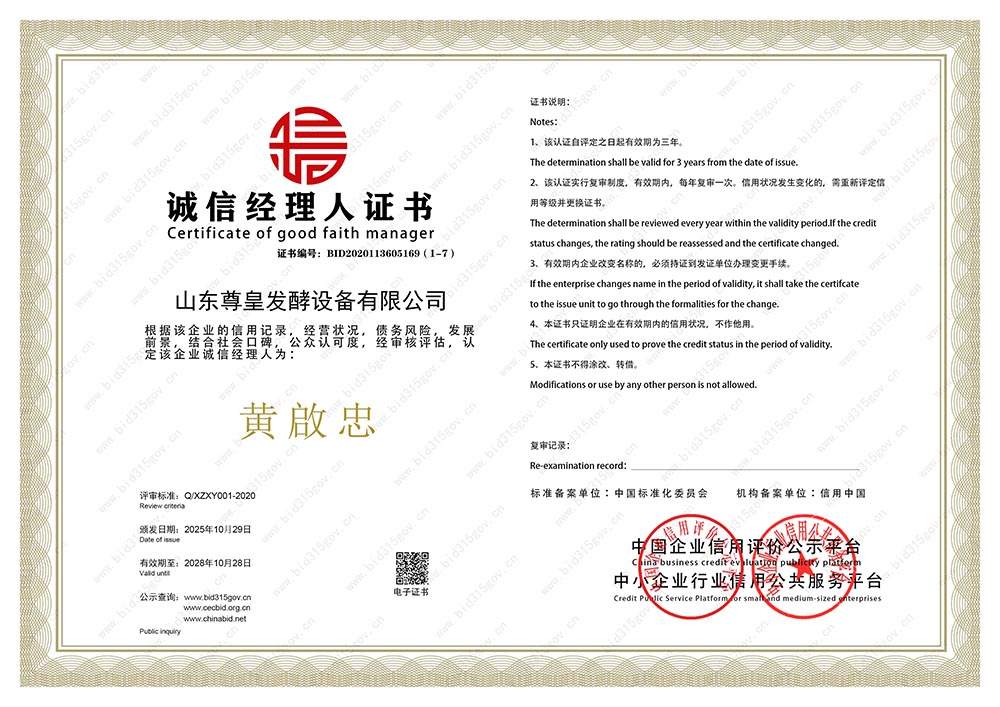 誠(chéng)信經(jīng)理人榮譽(yù)證書(shū)