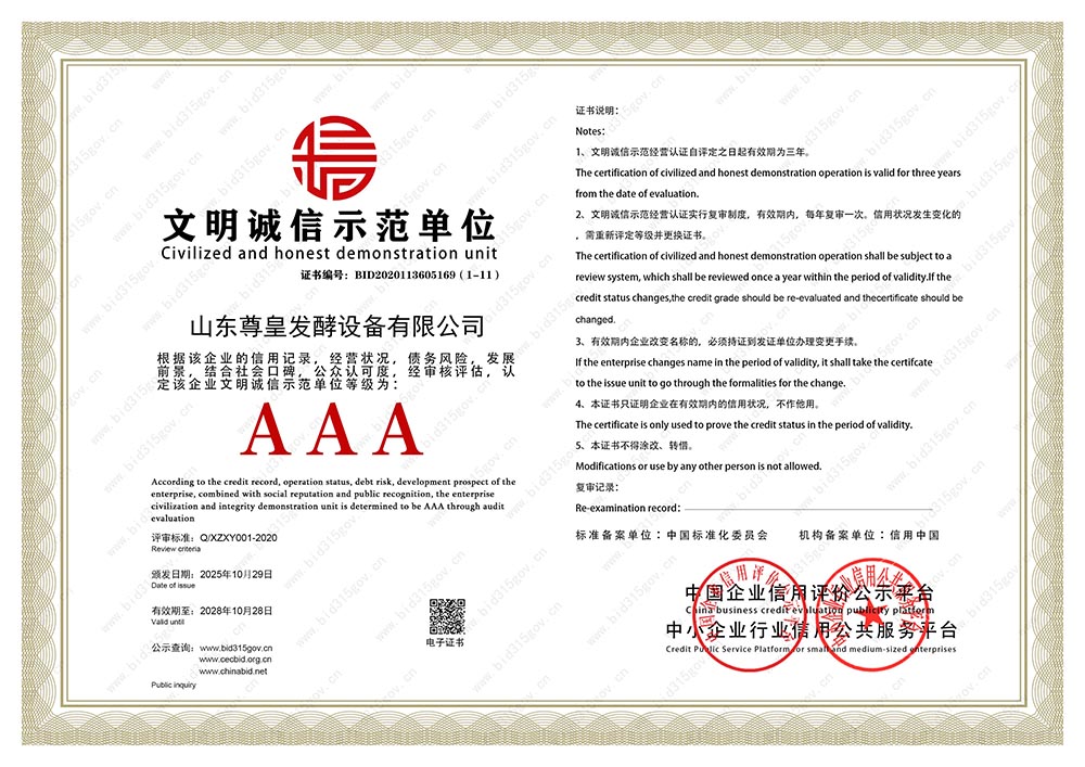 企業(yè)信用評(píng)價(jià)AAA信用企業(yè)銅牌