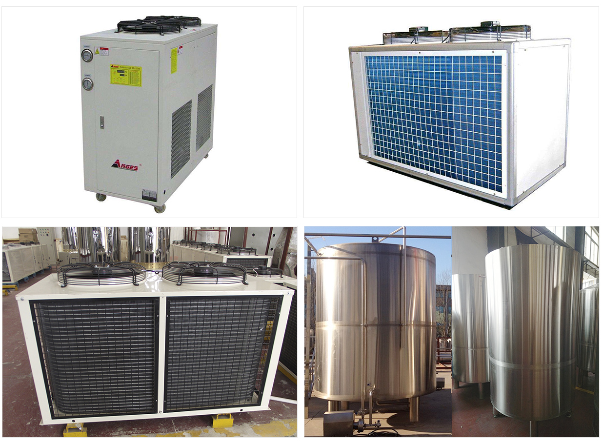 制冷系統(tǒng)主要為糖化系統(tǒng)和發(fā)酵系統(tǒng)提供有效分時和持續(xù)降溫。制冷裝置包含制冷機組、冰水罐、冷水罐、冰水泵、冷水泵、冰水管道閥門等部件。山東尊皇生產(chǎn)的冰水罐冷水罐系列內(nèi)外304不銹鋼,加厚保溫層,精工制作,有300升、500升、1000升、2000升、5000升等型號,不同型號的冰水罐配套不同的精釀設(shè)備。